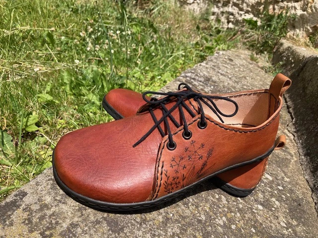 K šití Maruška používá prémiovou třísločiněnou hovězinu, kterou následně barví. Síla podrážky je 4 mm.Kurz je ideální pro všechny, kdo chtějí ochutnat jak pracovat s kůží a vlastnoručně si ušít svoje boty.
